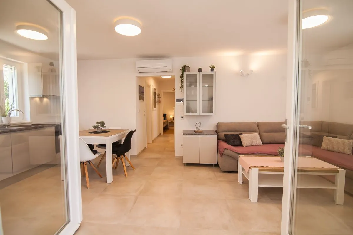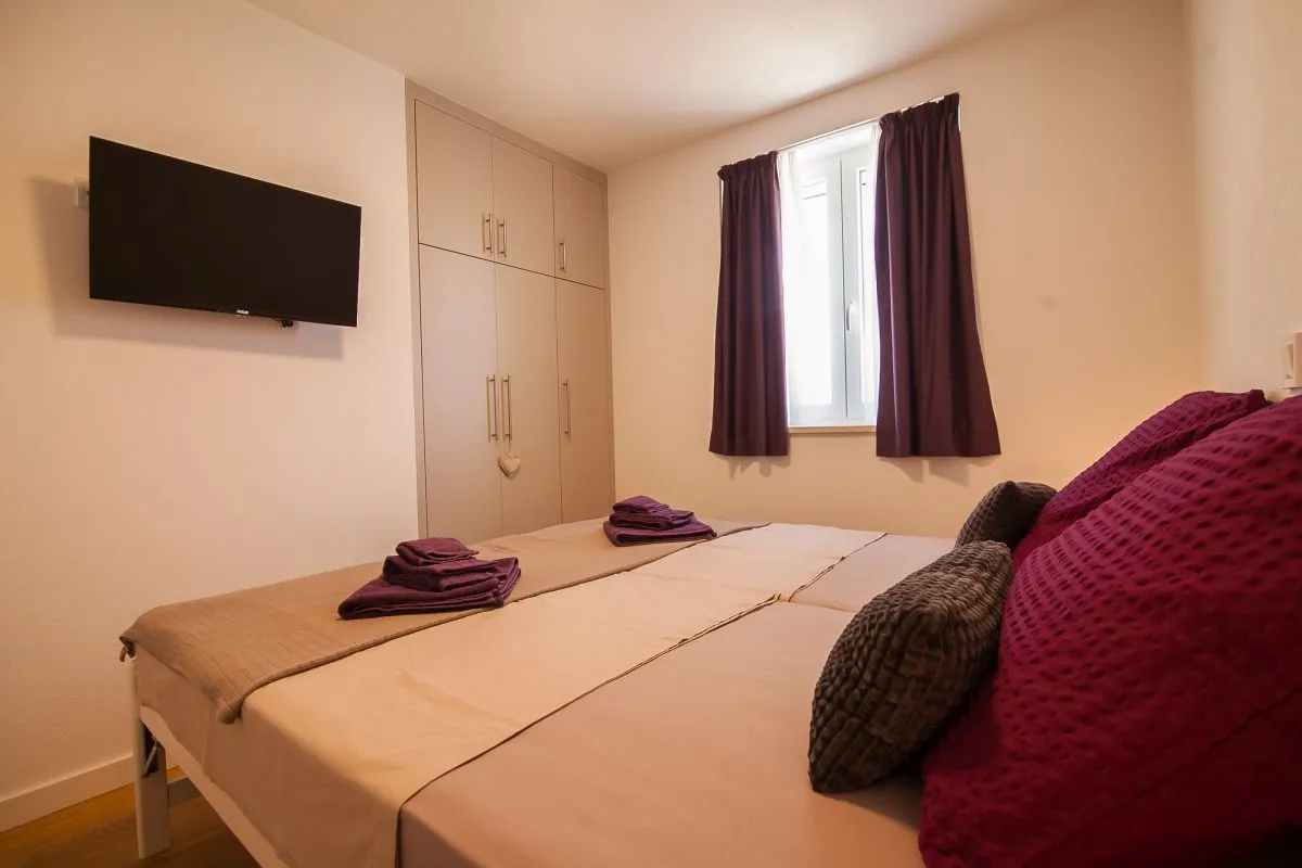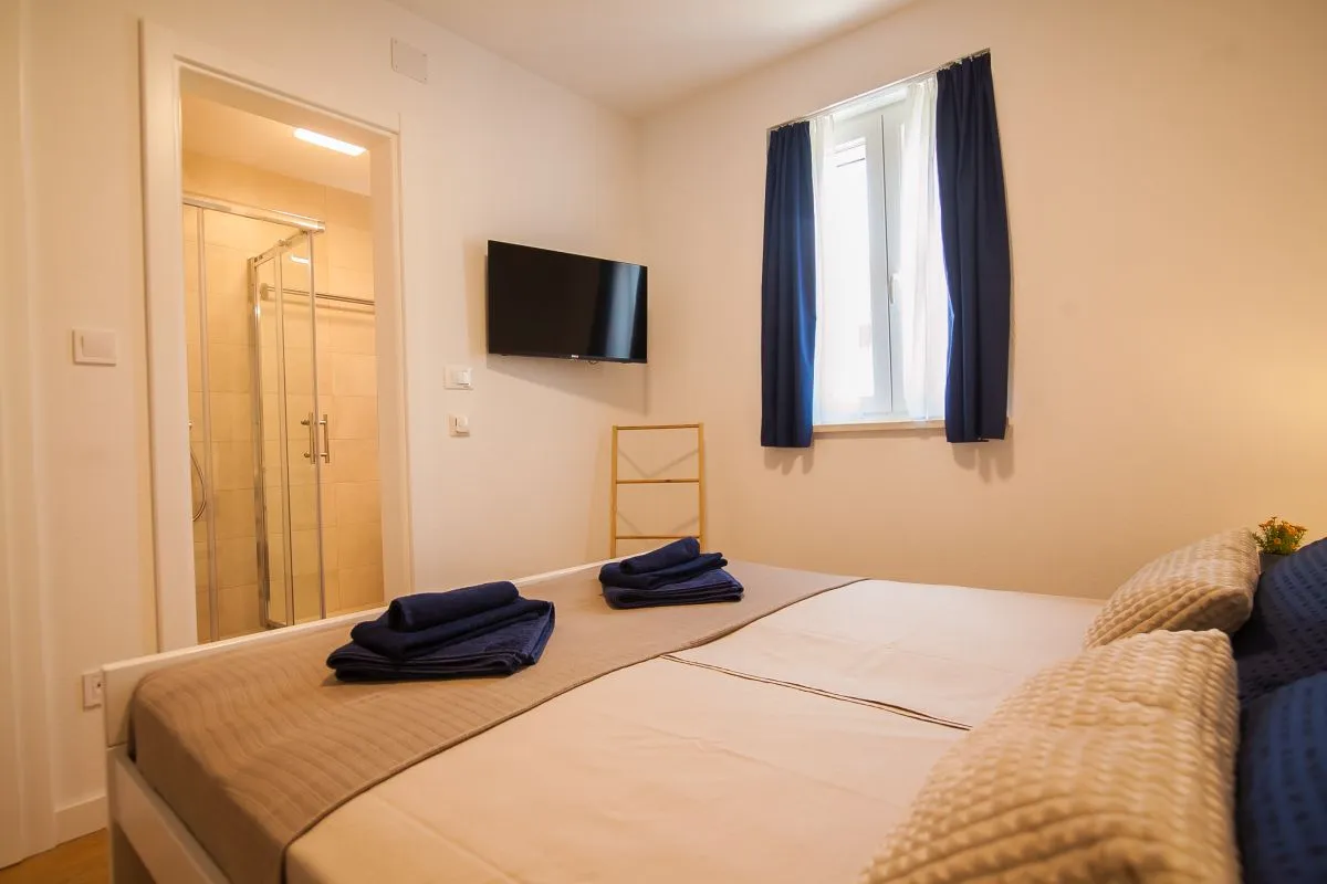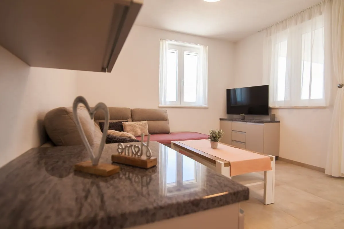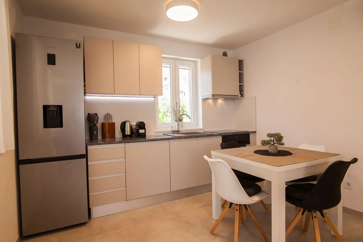 Neu gebautes, modernes Apartment mit 3 Schlafzimmern im Zentrum von Bol. Dieses hochwertige, klimatisierte Apartment bietet Platz für bis zu 6 Personen und befindet sich in einem renovierten Haus. Es besteht aus zwei Schlafzimmern mit Super-Kingsize-Betten und einem Schlafzimmer mit zwei Einzelbetten. Jedes Schlafzimmer verfügt über einen Kleiderschrank und SAT-TV. Es gibt einen Wohnbereich mit großem Sofa, SAT-TV und WLAN, einen Essbereich mit ausziehbarem Tisch für 6 Personen und eine moderne und voll ausgestattete Küche mit allen Geräten und Utensilien, die Sie benötigen. Die Wohnung verfügt über zwei komplette Badezimmer, davon eines en suite und eines mit einer Waschmaschine. Das Beste an der Wohnung ist der Außenbereich mit einem Tisch und Stühlen für 6 Personen sowie einer Sommerküche mit Elektrogrill und Kühlschrank.